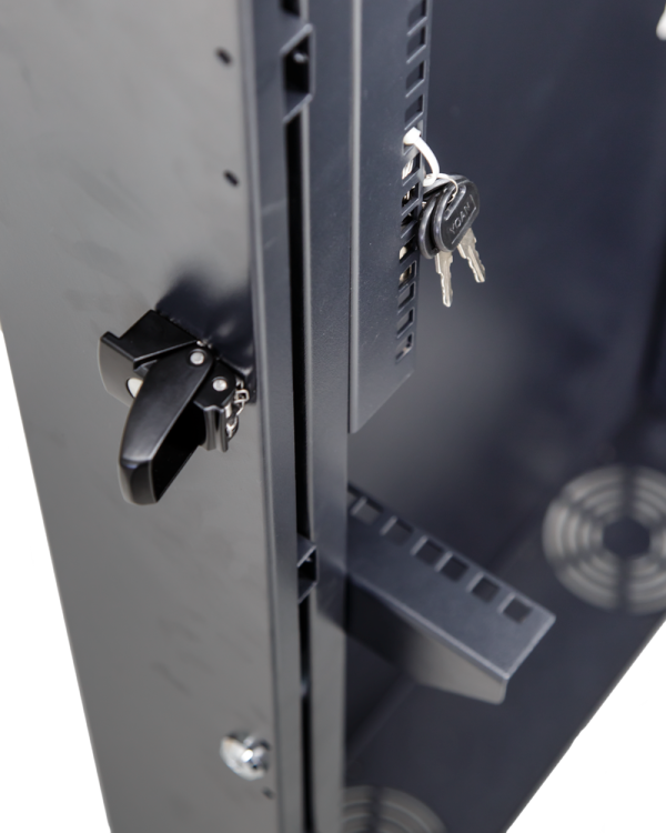• Allows servers and equipment to be mounted vertically up to 900mm, to conserve space without protruding from the wall as far as traditional wall mount cabinets