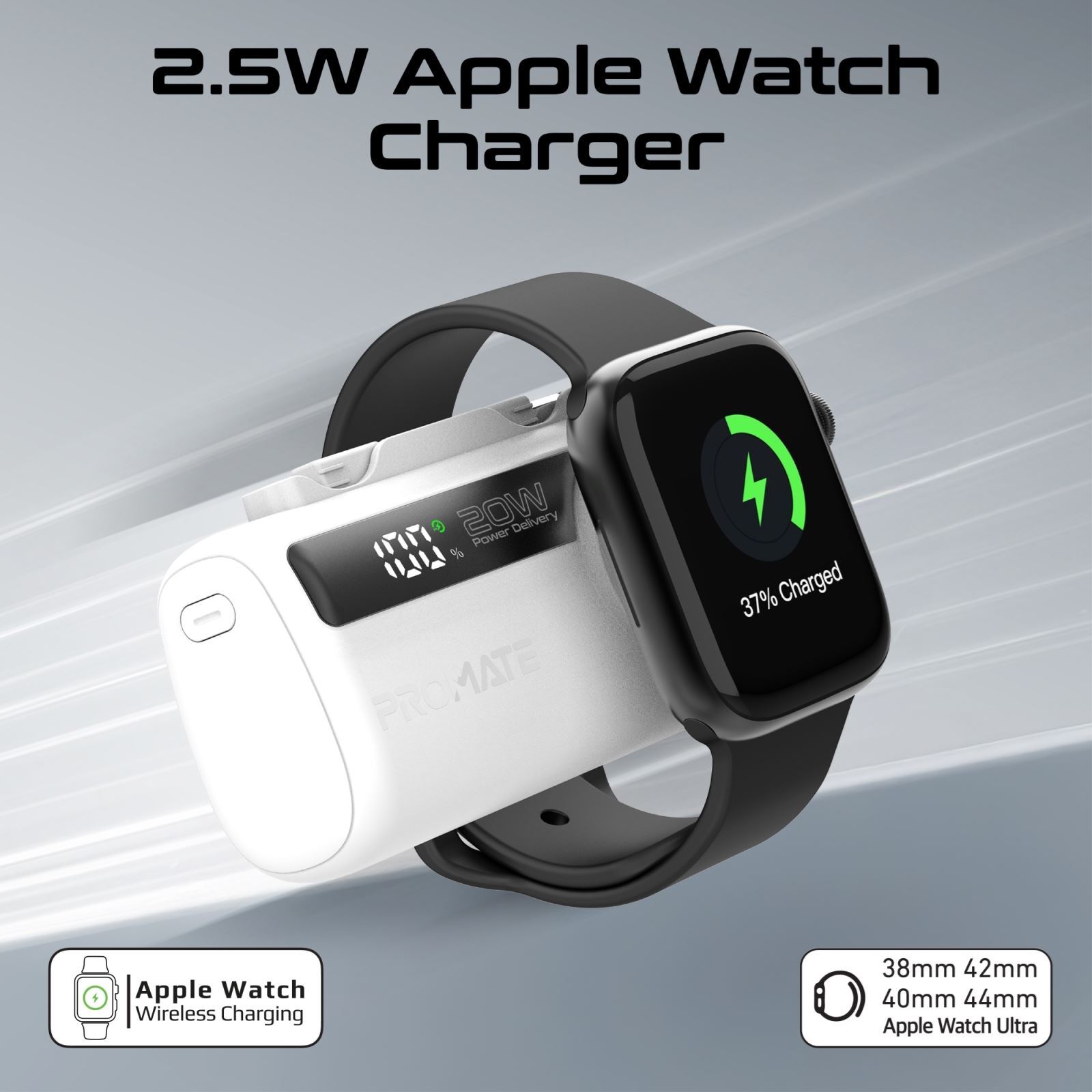 2.5W Apple Watch Charger: Keep your Apple Watch charged with the dedicated 2.5W charger. Designed to provide a steady and efficient charge for your smartwatch.