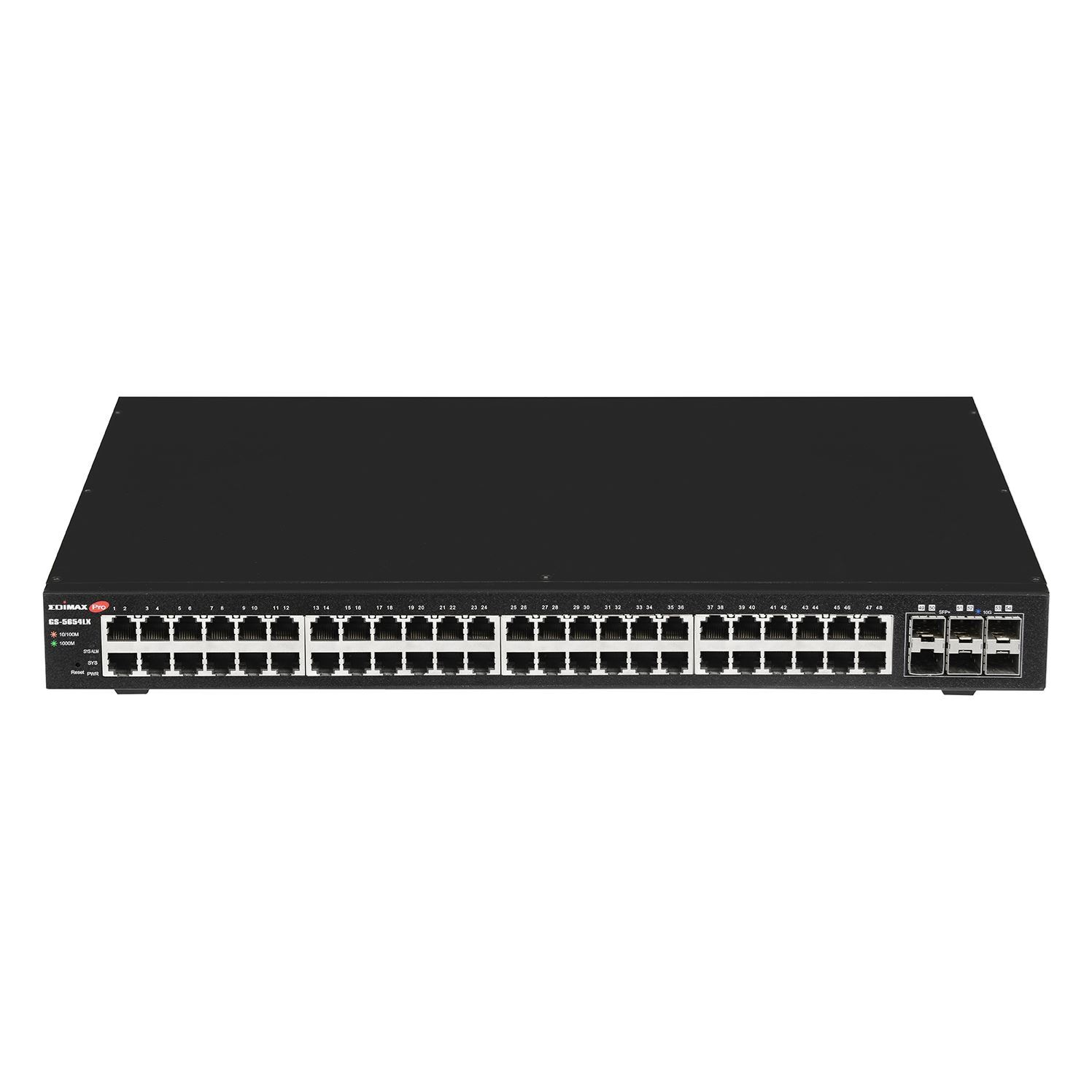 The EDIMAX Pro GS-5654LX web-smart switch comes with a web-based user interface, 48 Gigabit ports, and 6 SFP+ ports for 10 Gigabit uplinks. The Gigabit connectivity fully utilizes the power of your office networking for demanding tasks, such as data backup, video conferencing, IP surveillance, high volume transaction processing, large file transferring, and more.