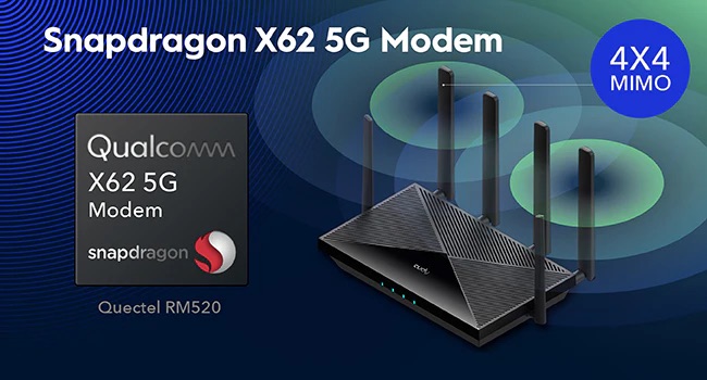 Qualcomm X62 5G modem, enabled by Advanced AI features and a 4nm process chip, provides data downlink speed up to 3.4 Gbps.