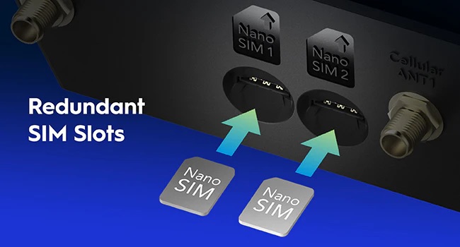 Dual SIM slots provide redundancy and keep the device always online.