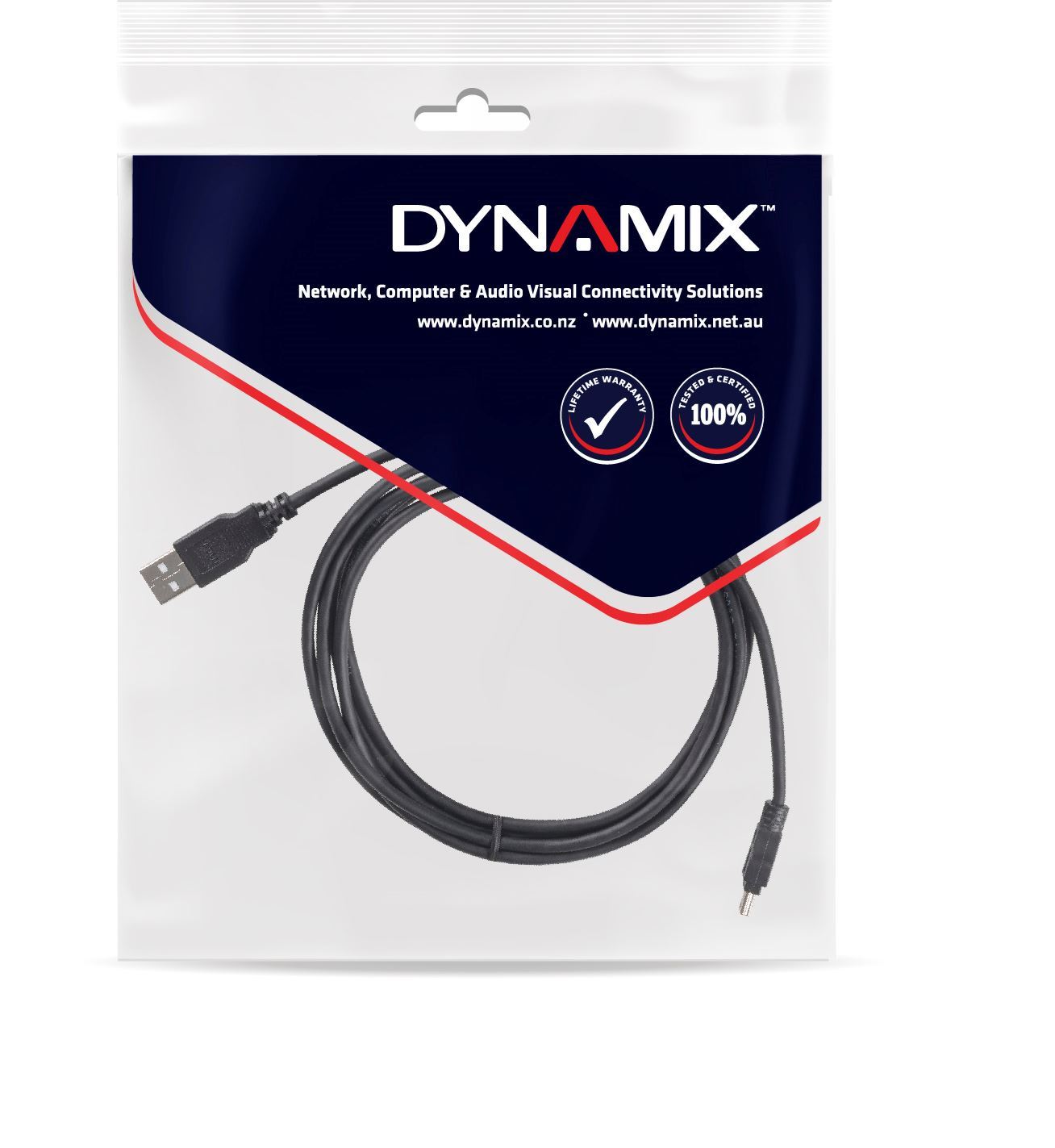 DYNAMIX 5m USB 2.0 Mini-B Male to USB-A Male Connectors.