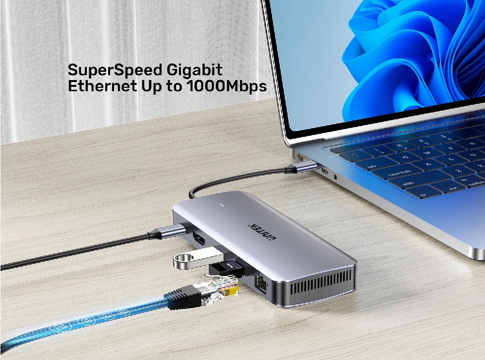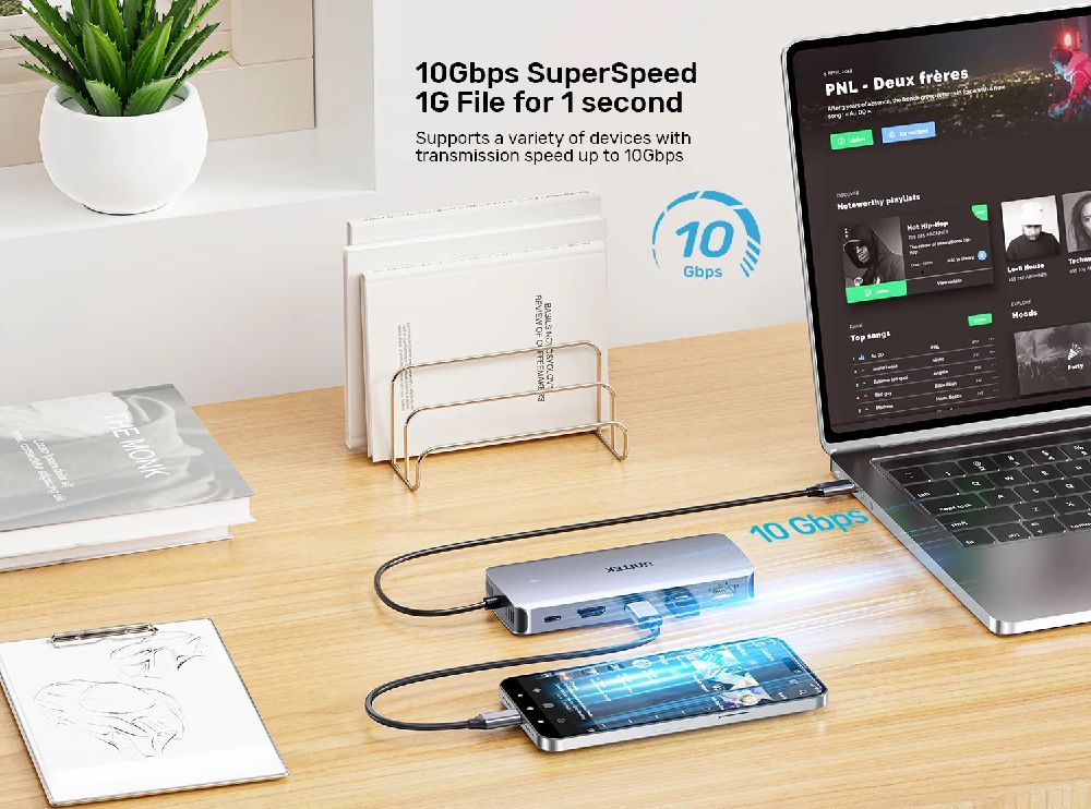 The Unitek hub, with its USB 3.1 Gen2 interface, delivers 10Gbps SuperSpeed transfer, moving a 1GB file in just 1 second. Supporting a variety of devices, it ensures rapid data transfers between your laptop, phone, and other peripherals, making it perfect for professionals and creators needing quick, reliable access to large files.