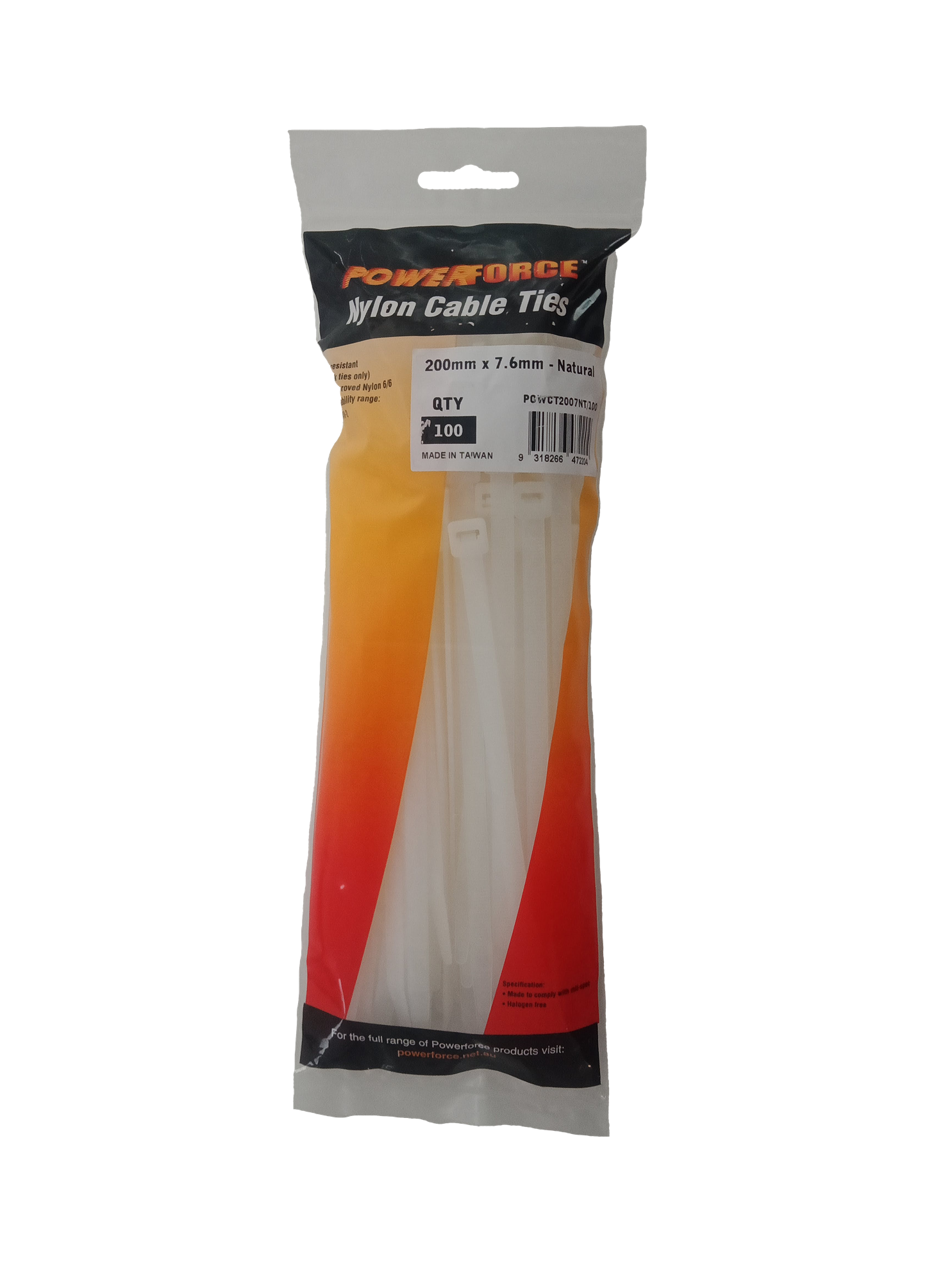 7.6 x 200mm Natural Cable Ties Pack of 100 55kgs Tensile Strength