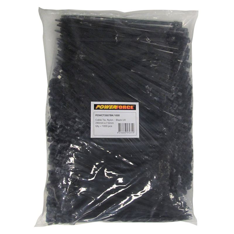 7.6 x 280mm Black UV Cable Ties Pack of 1000 55kgs Tensile Strength