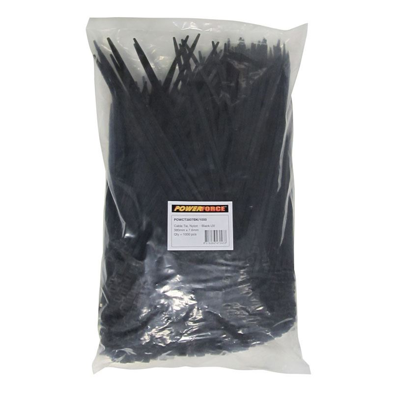 7.6 x 380mm Black UV Cable Ties Pack of 1000 55kgs Tensile Strength