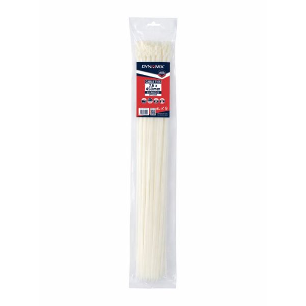 7.6 x 450mm Natural Cable Ties Pack of 50 540N/55.1kgs Tensile Strength
