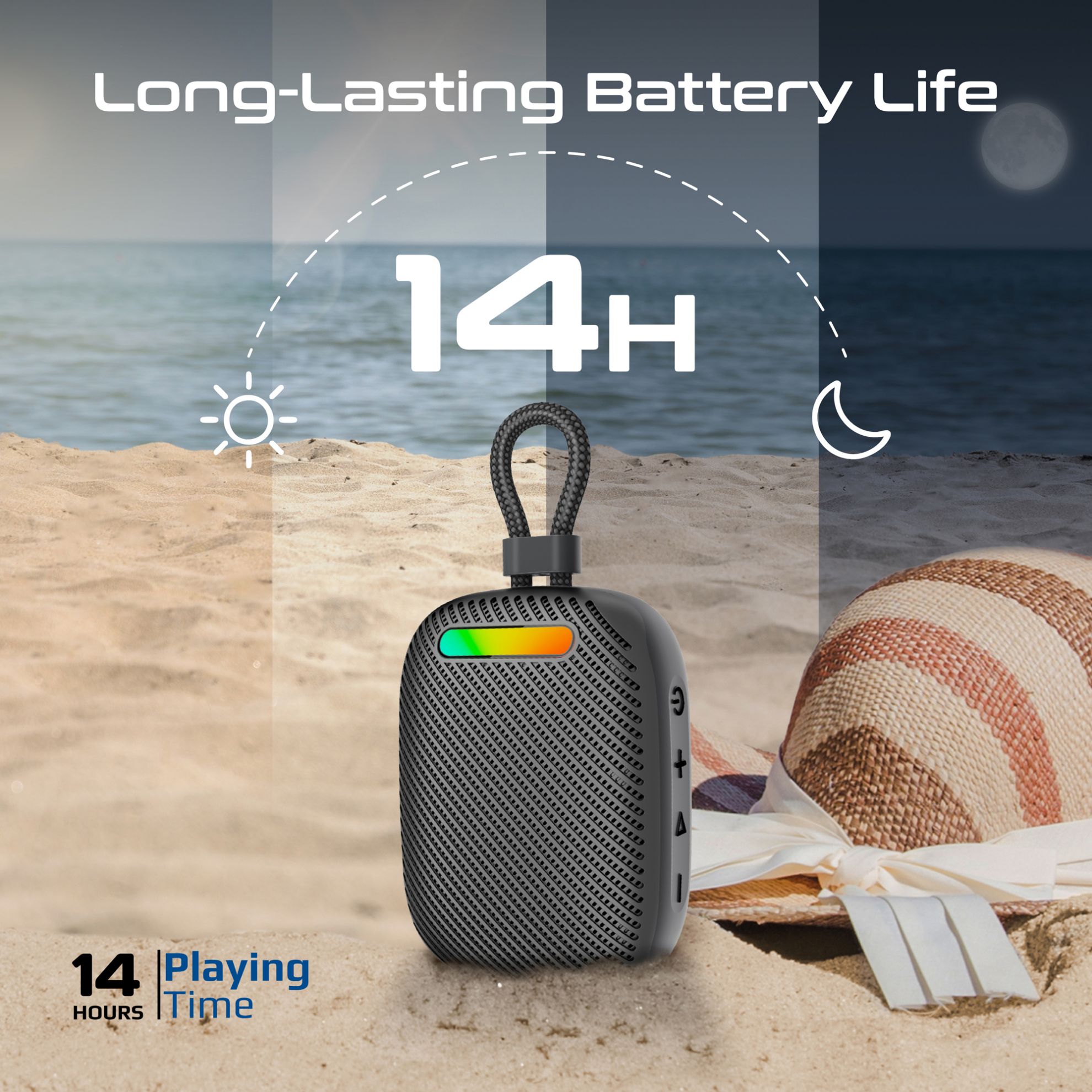 Experience bold audio in a compact form with the Tingz CrystalSound™ 7W Portable Wireless Speaker. Powered by Bluetooth 5.4 and a premium JL chipset, it delivers distortion-free sound across a wide 40Hz–20kHz range. With TWS pairing, connect two speakers for an immersive soundscape. The 1800mAh battery offers up to 14 hours of playtime, and its IPX6 water resistance keeps music going rain or shine. It features hands-free calling and supports music playback via a TF card. Built with durable ABS plastic and a metallic finish, Tingz CrystalSound™ is stylish and rugged. Choose from three RGB light modes. Whether hiking, poolside, or indoors, it's your go-to for immersive sound anywhere.