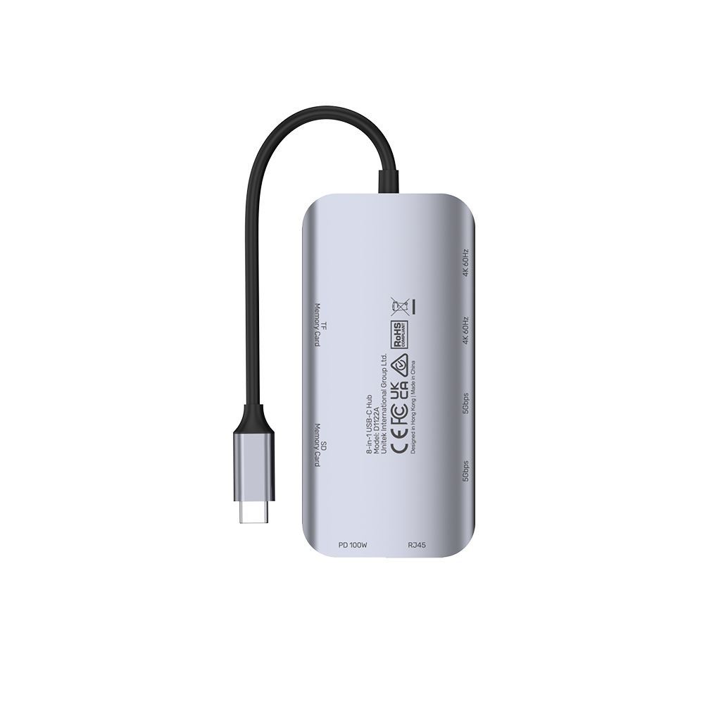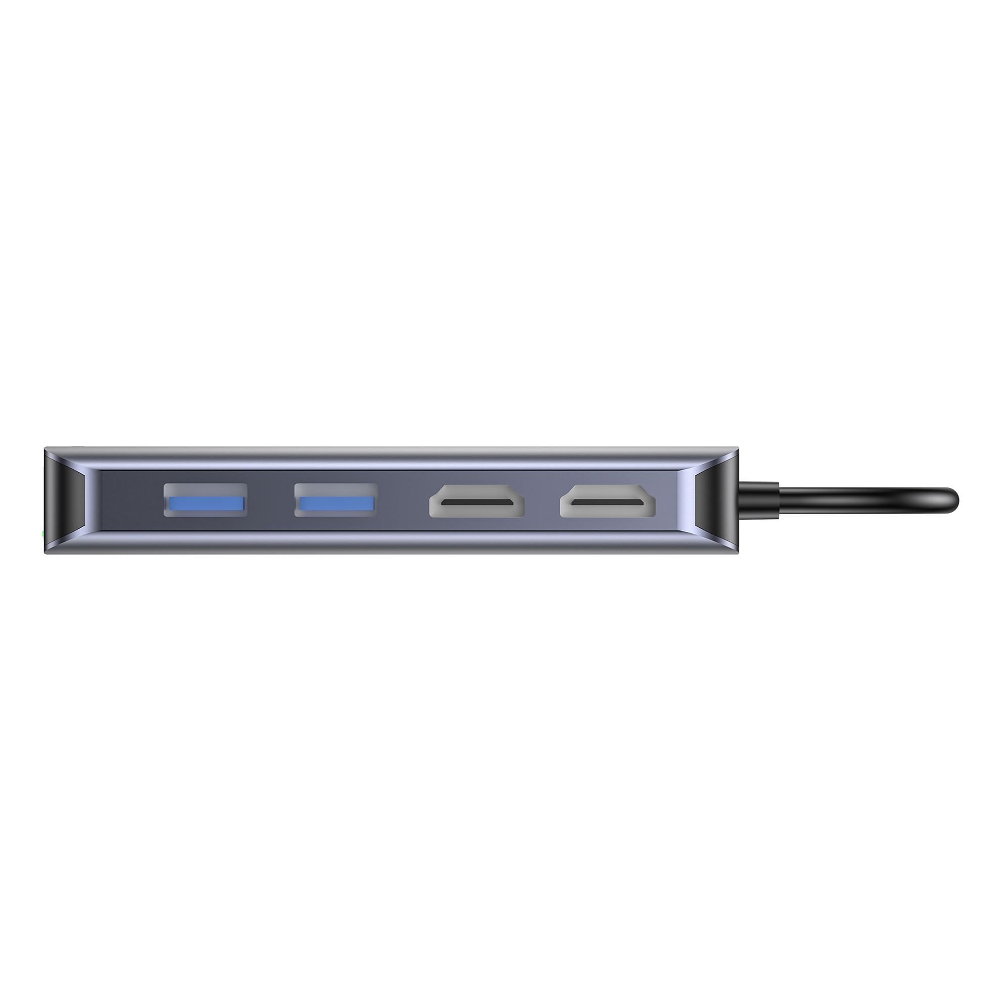 This 8-in-1 USB-C hub seamlessly integrates two USB 3.0 5Gbps ports, dual display outputs, a Gigabit Ethernet RJ45 port, dual card readers, plus the forceful Power Delivery 100W charging via the USB-C. HDMI output supports up to 4K@60Hz Ultra HD.