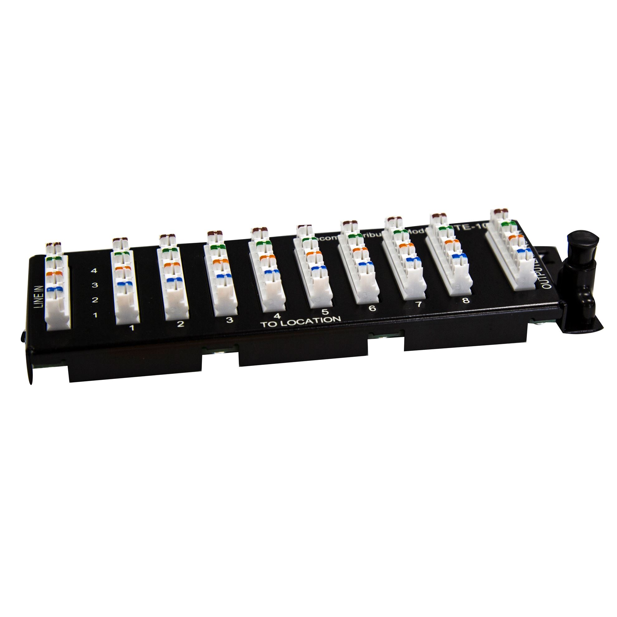 The Telco Distribution Module supports the bridged distribution of any combination of 4 or fewer analog telephone lines to 8 locations. It can also be used as an expansion module for extra locations.