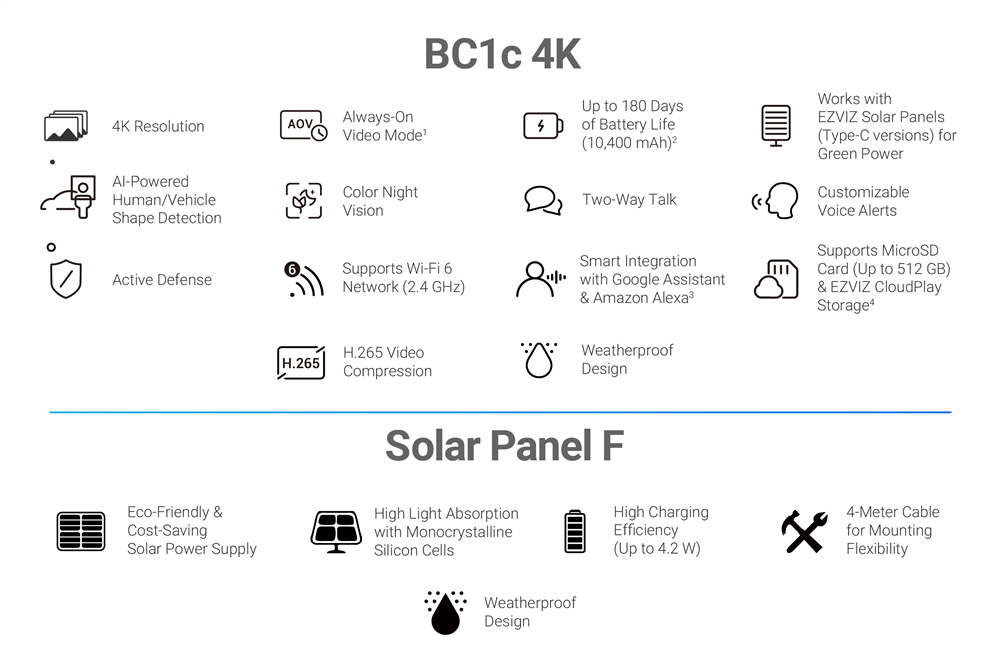 8MP (4K) WiFi Outdoor Single Outdoor Security Camera with Solar Panel