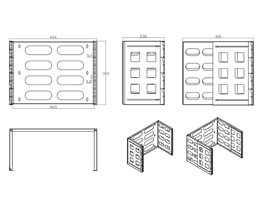 DYNAMIX wall mount and utility brackets offer another choice small sized rack installations. Their small size makes them perfect for areas with very limited space. They come pre-assembled in one piece. Mounting holes are spaced apart to align with wall studs. They can be mounted on a wall to hold network equipment.