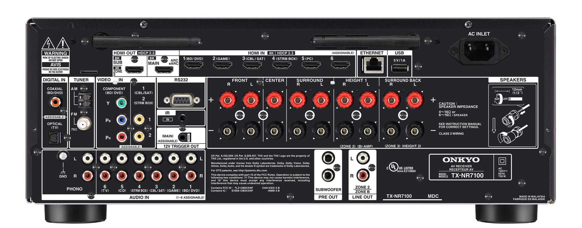- 5.2.4-ch/7.2.2-ch Dolby Atmos® and DTS:X playback