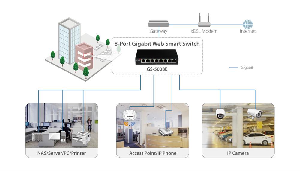 | Ports | 8 x RJ45 10/100/1000Base-T Gigabit Ports | |