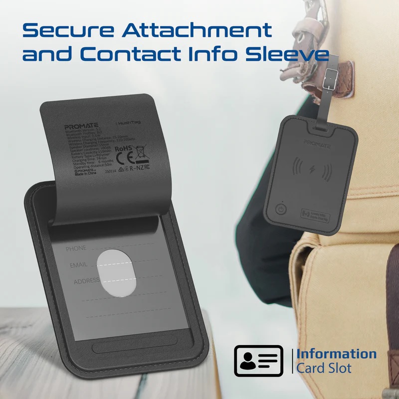 HushTag is a smart luggage tag that combines advanced tracking with refined design for travellers who value both security and style. Crafted from premium leather and wear-resistant super fibre, it’s ultra-slim yet durable enough for any journey. With Apple Find My integration, Bluetooth 5.2, and a powerful 90dB speaker, HushTag lets you locate your bag quickly and accurately. The adjustable buckle strap ensures a secure fit, while a discreet sleeve stores your contact details for manual ID. Its wireless charging system powers a 110mAh battery that lasts up to 6 months on a single charge. Designed exclusively for Apple users, HushTag ensures your belongings are always protected, traceable, and within reach.