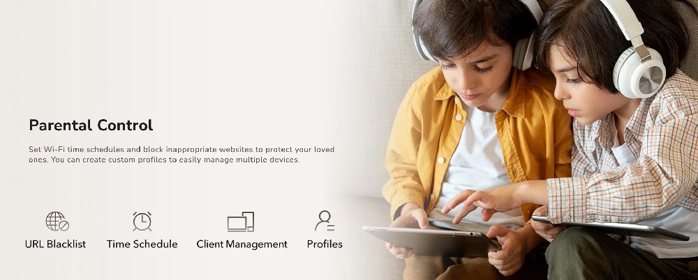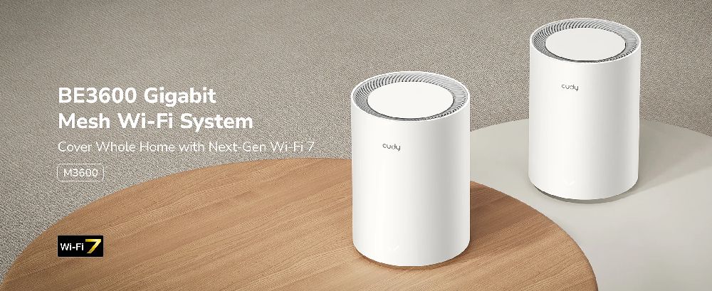 A dual-band WiFi 7 router with an aggregate of 3.6 Gbps speed and three Gigabit ports, catering to a large home with Gigabit Internet access.