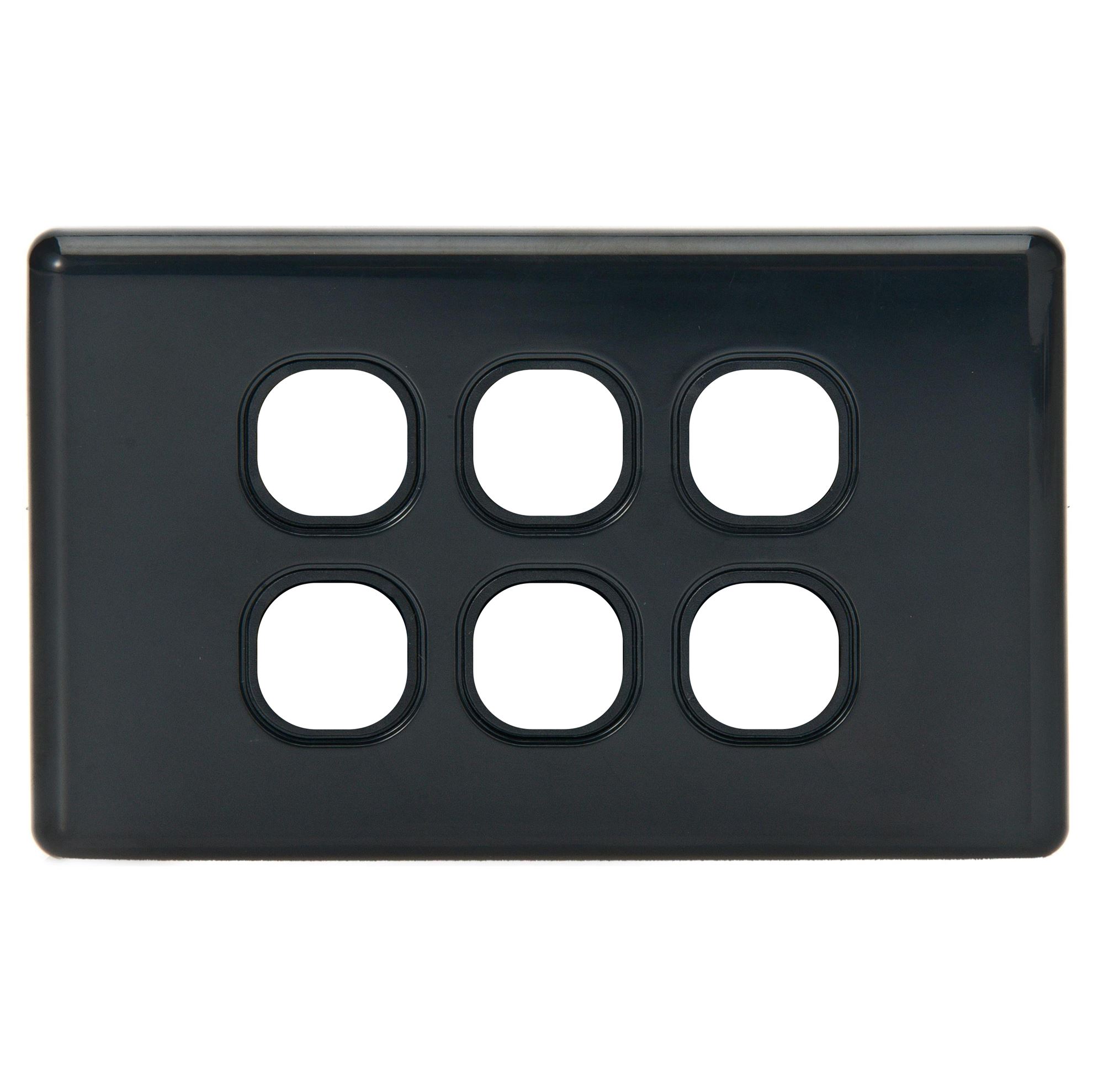 Black Switch Plate Only 6 Gang Accepts Tradesave Mechanisms Flame Resistant Polycarbonate