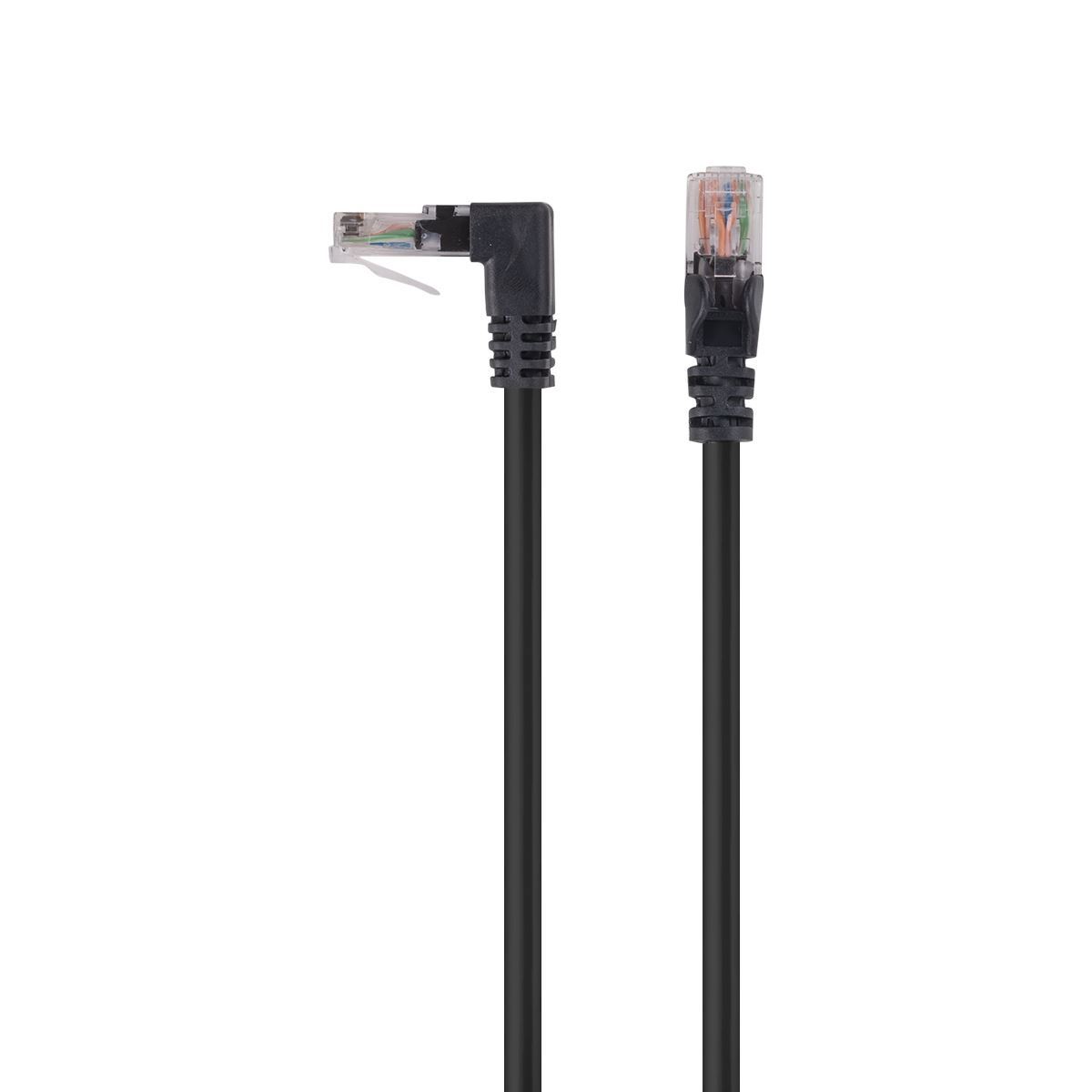 Cat6 Black UTP Right Angled Patch Lead T568A 250MHz 24AWG Unshielded Plug.