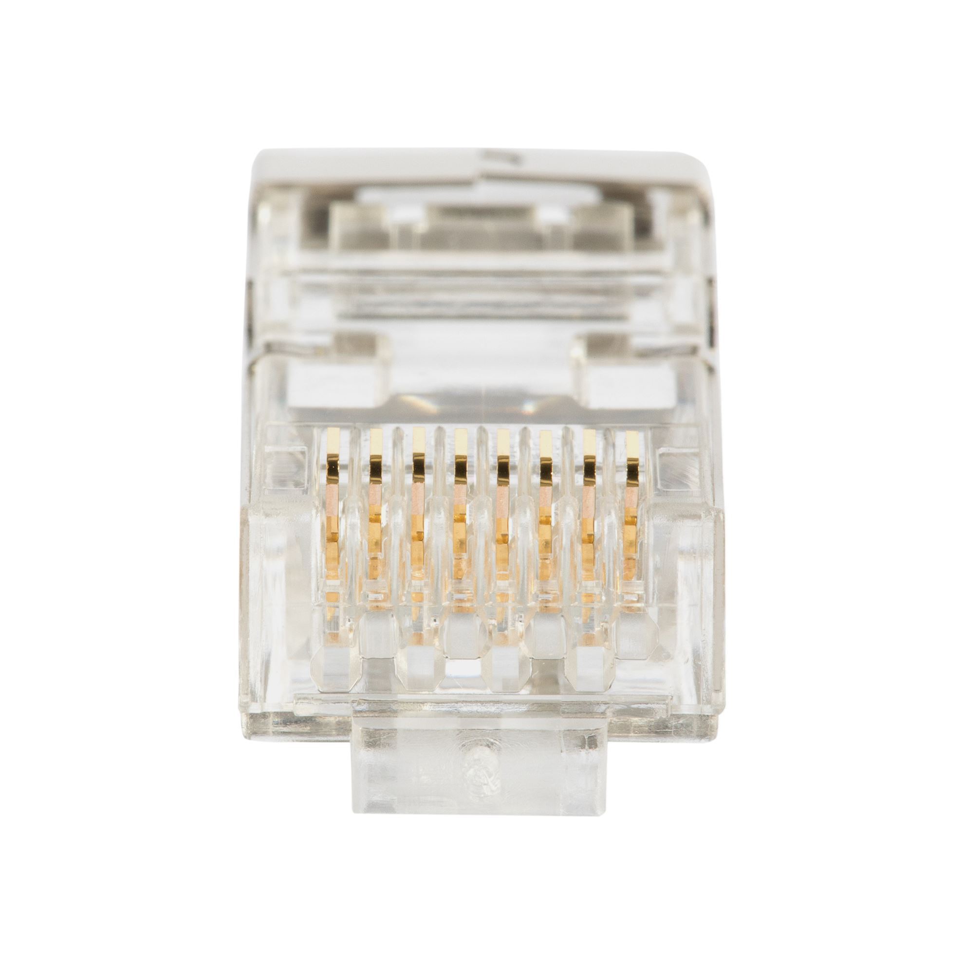 Our DYNAMIX RJ45 Pass-through modular plug connectors are designed to simplify the process of terminating RJ45 modular plugs, by allowing the wires to be inserted through the connector and out the front to easily verify the proper wiring order. Pulling the connector down over the cable jacket and seating it tightly in the rear of the connector this optimizes the performance of the termination.