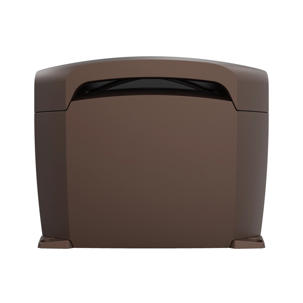 Klipsch’s Courtyard 4.1 landscape system uses four 4" satellite speakers with 1" horn-loaded aluminium tweeters and a 10" subwoofer, delivering 35Hz–20kHz response, 120W continuous (240W peak) power handling, 86dB sensitivity, and 107dB max output. The UV-treated, all-weather ABS/LLDP enclosures are IPX7 rated, with sealed partial-burial sub design and bare-wire pigtail inputs, finished in brown matte.