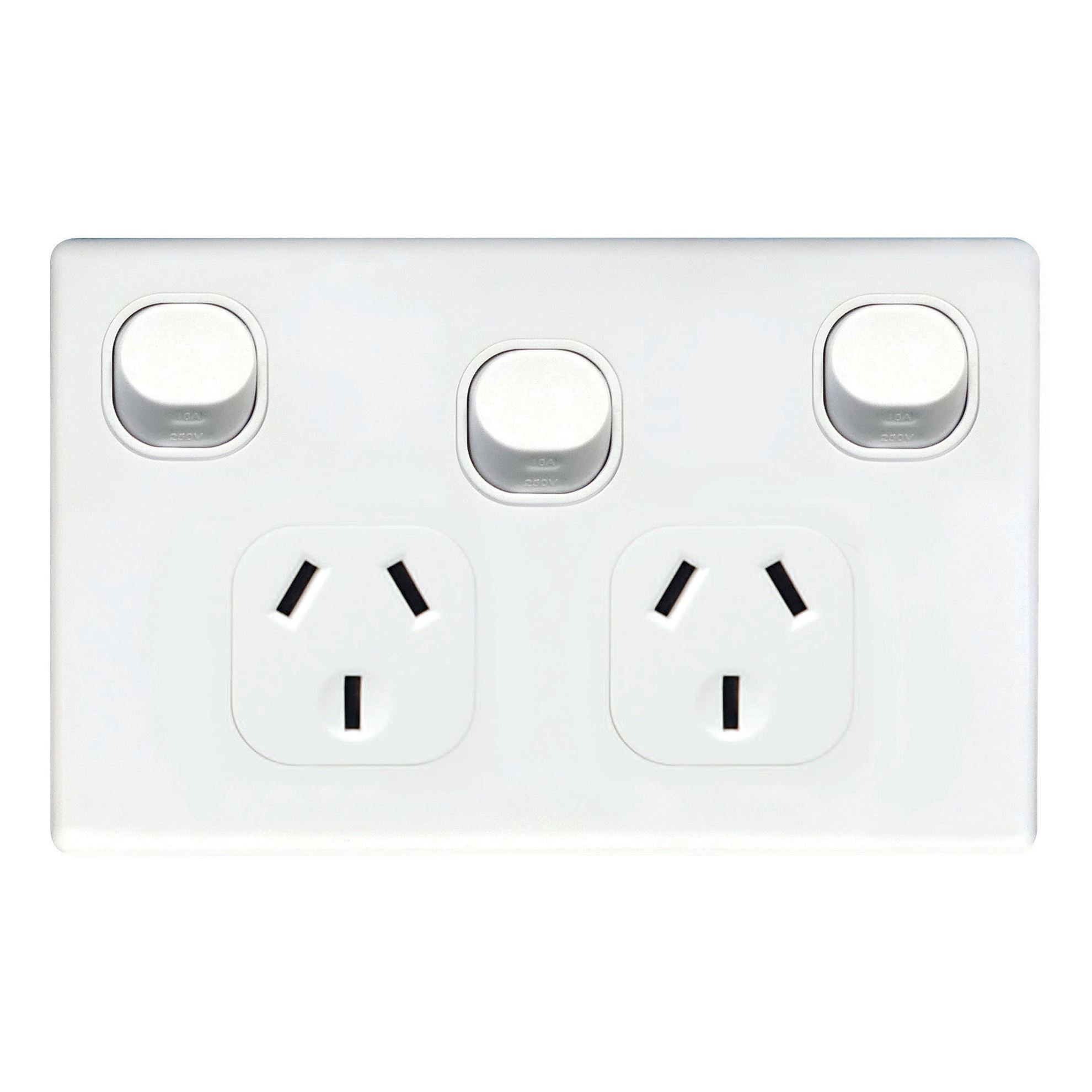 Double 10A Horizontal Power Power Point Extra 16A Switch. Resistant Polycarbonate White