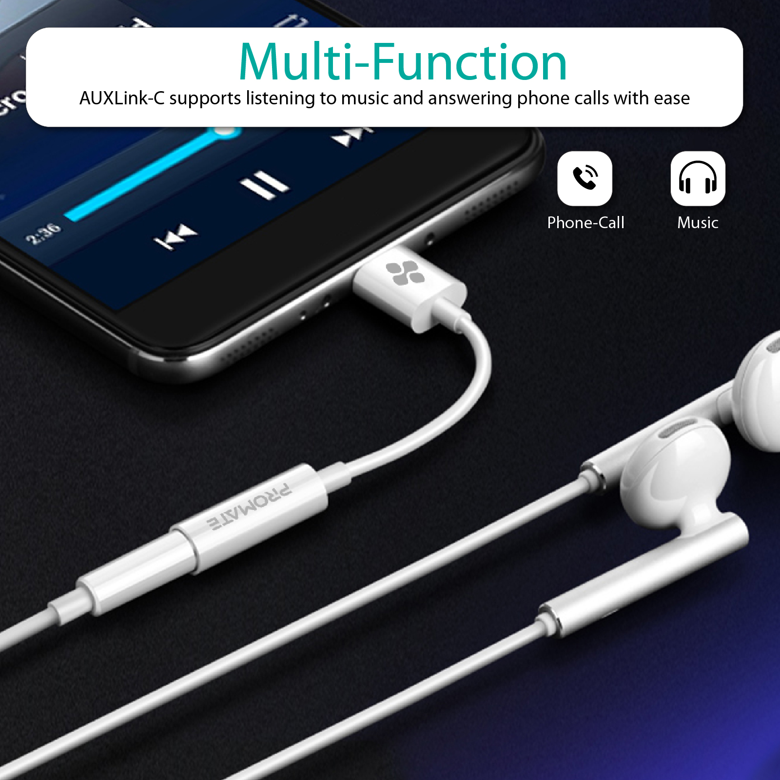Add the 3.5mm jack back to your USB-C-enabled devices missing the headphone jack. AUXLink-C enables you to connect your 3.5mm headphones or earplugs to listen to music or answer phone calls. Compact and easy to use, AUXLink-C is the accessory you need.