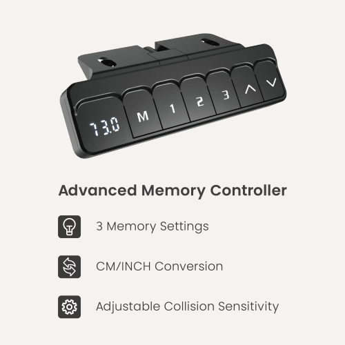 Designed to seamlessly integrate into any home office or corporate environment, this innovative desk offers the perfect blend of functionality, durability and affordability. Powered by a powerful brushless motor, the desk provides smooth, quiet and reliable height adjustment at the touch of a button. Powerful lift columns provide quiet, smooth movement at high speeds. Current collision avoidance system detects objects in the travel path to prevent collisions. Easy-to-use control panel allows easy height adjustment, while programmable memory presets save favorite settings for added convenience.