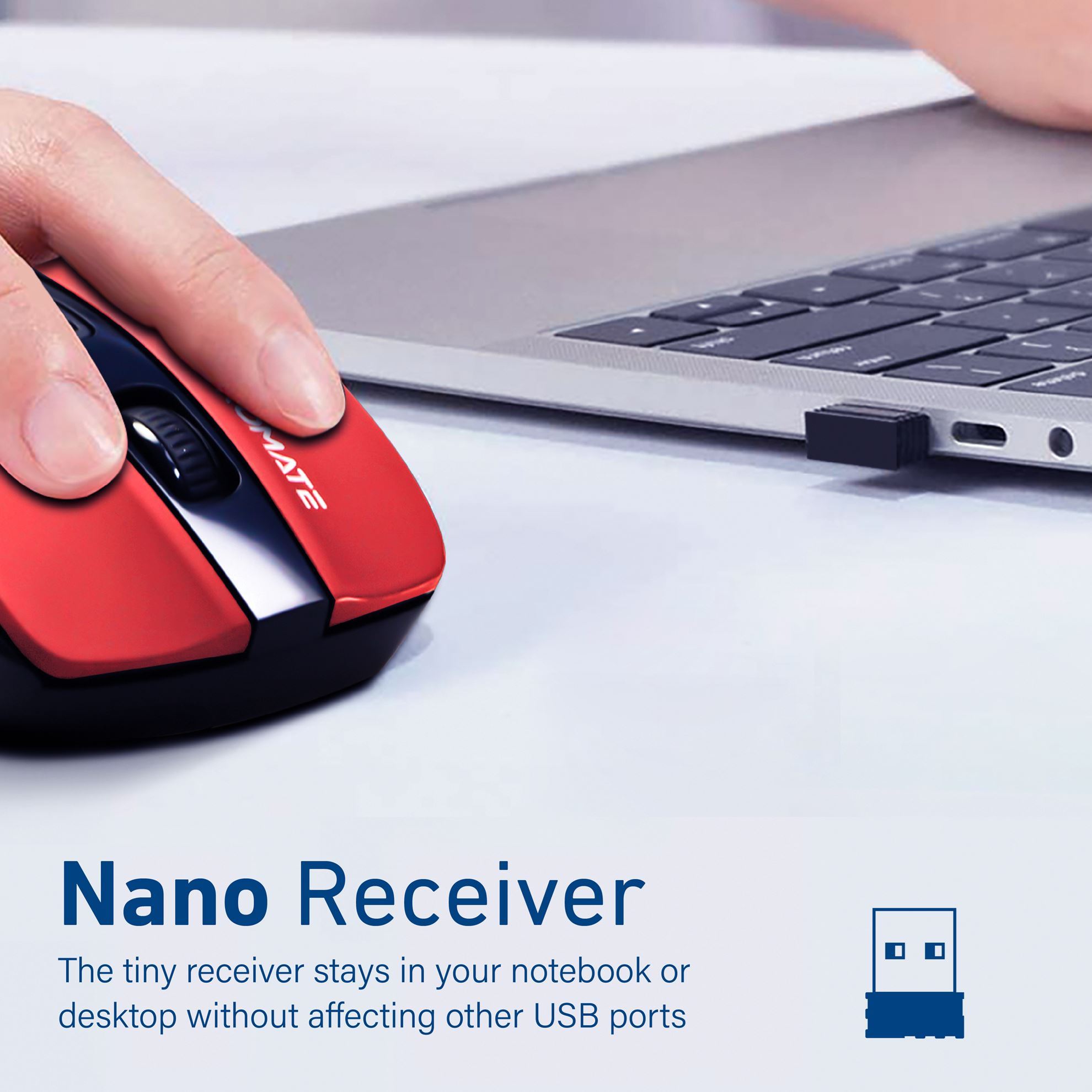 The tiny receiver stays in your notebook or desktop without affecting other USB Ports