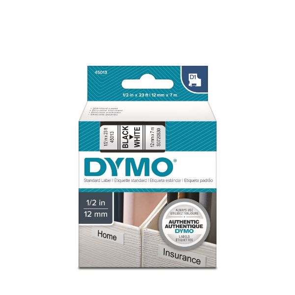 DYMO Genuine D1 Label Cassette Tape 12mm x 7m BLACK ON WHITE Also Known As: 45013