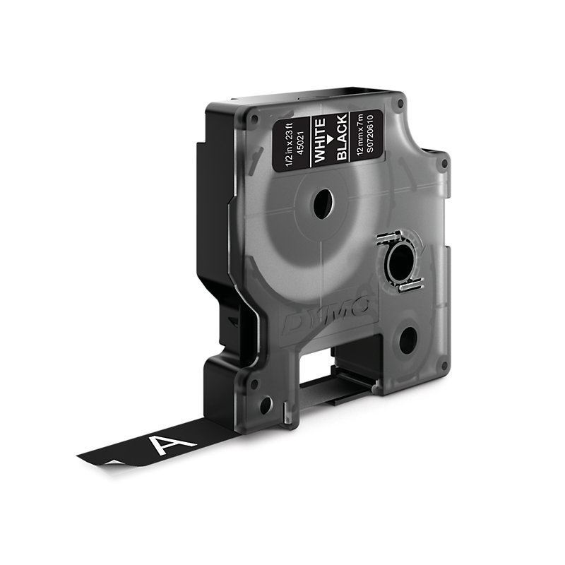 DYMO Genuine D1 Label Cassette Tape 12mm x 7M, White on Black Suitable for the Label Manager and LabelWriter Duo label makers