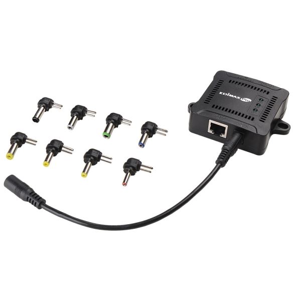 - Splits a networked PoE connection into separate power and gigabit data connections.
