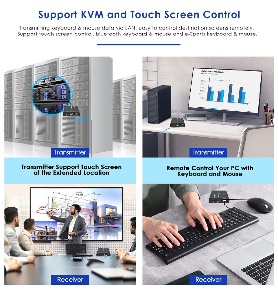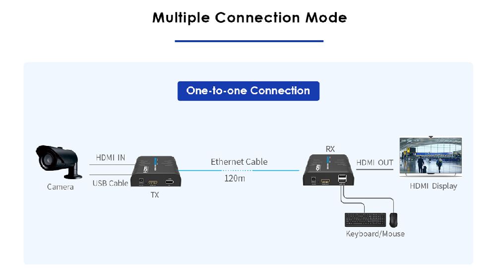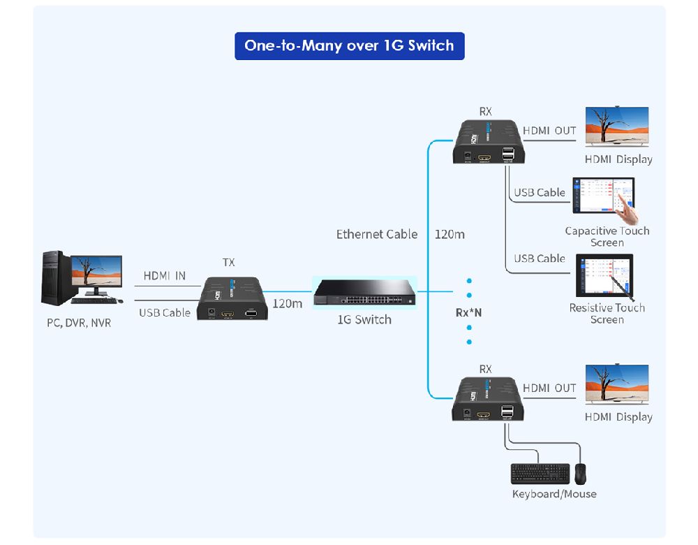 HDMI KVM Extender Over Single Cat5E/6 up to 120M Multipoint/Point to Point.