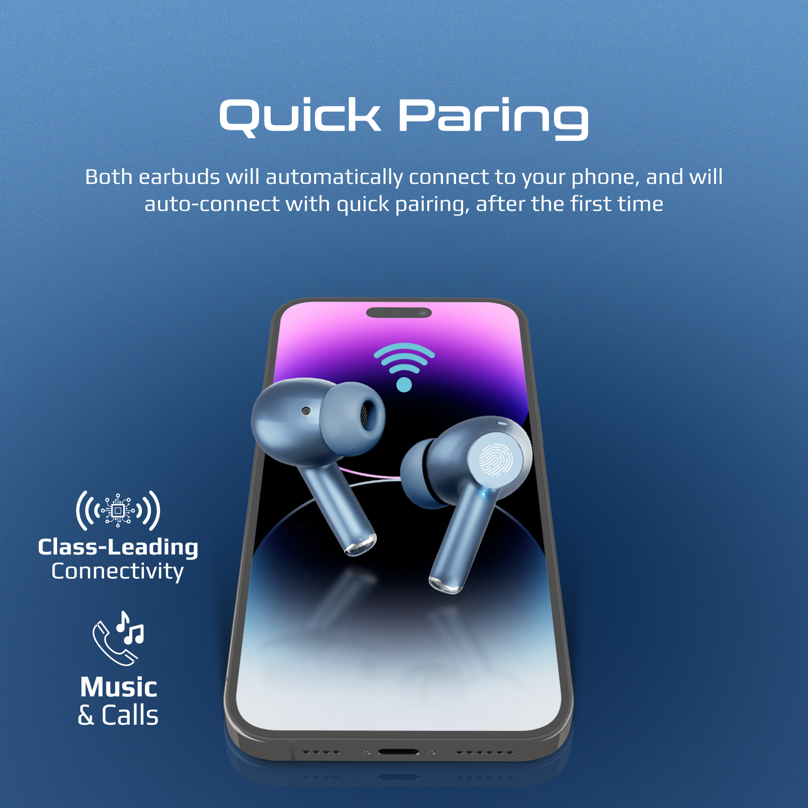 Quick Pairing: Both earbuds will automatically connect to your phone, and will auto-connect with quick pairing after the first time.