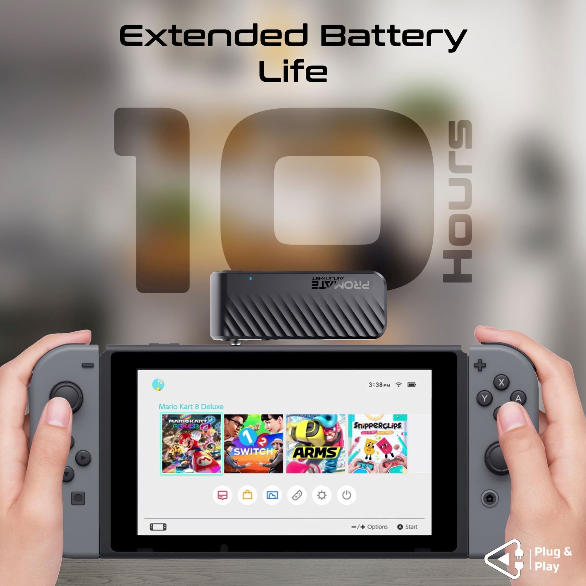 Extended Battery Life: Benefit from up to 10 hours of continuous playtime with the robust 200mAh battery, featuring auto power-off after 10 minutes of disconnection for efficient energy use.