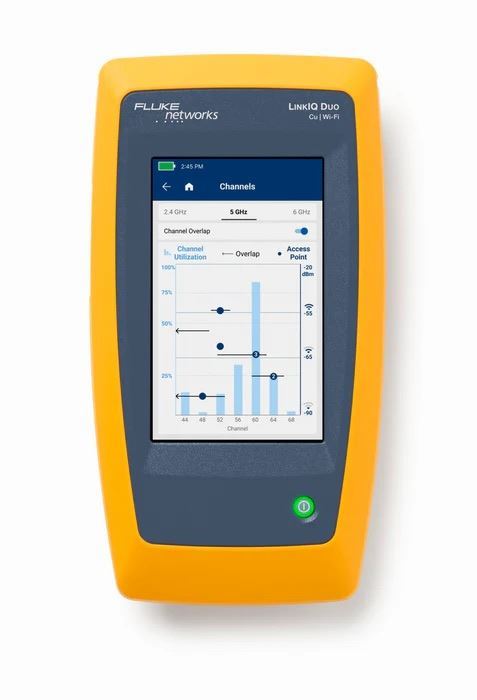 The Fluke Networks LinkIQ Cable+WiFi+Network tester delivers trusted cable testing, powerful network visibility and analysis for Wi-Fi up to 6E. Cable test results are shown in a graphical format for quick understanding and troubleshooting. A powerful suite of tools makes it easy to verify or troubleshoot network device connectivity and understand the Wi-Fi environment. The large, color, gesture-based display makes techs productive instantly. All in a rugged package backed by legendary Fluke support.
