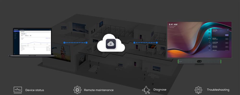 MAXHUB's Pivot tool allows easy remote management and updates of room devices, boosting operational efficiency.
