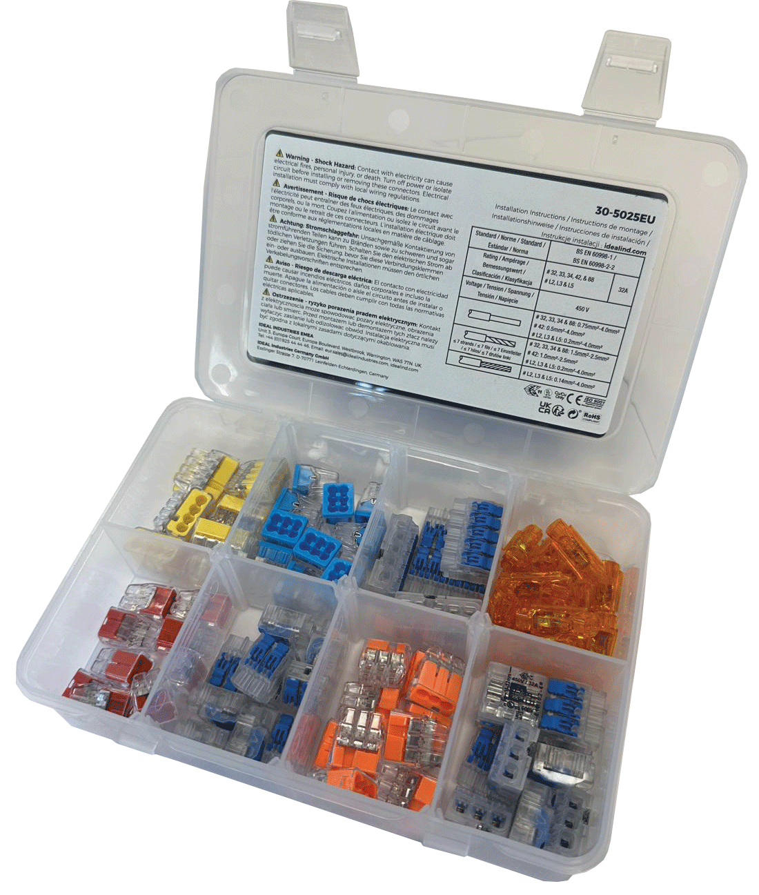 IDEAL Push-in wire connectors can reduce installation time by up to 50% compared to more traditional connection methods such as terminal blocks. They are the perfect replacement for crimped splices with 2, 3 and 4 port models rated at 32A.