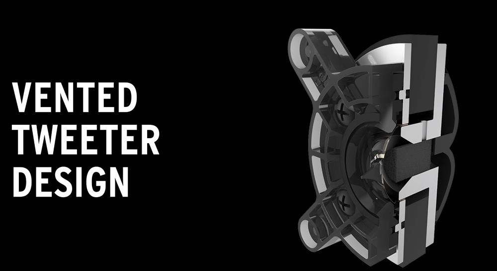 The vented tweeter housing reduces standing waves that create unwanted harmonics, resulting in enhanced detail and clarity in high-frequency reproduction.