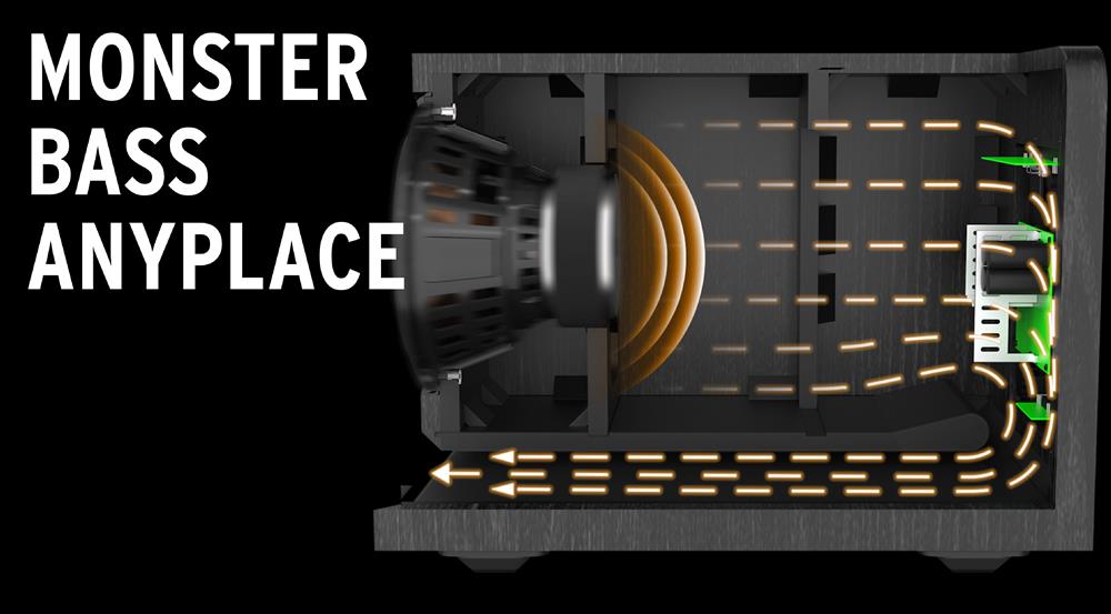 Proprietary internal geometry with a new Aerofoil slot port design minimises port noise for clean, undistorted low frequencies. The front-firing design allows for placement flexibility.