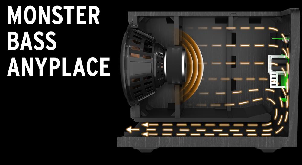 Proprietary internal geometry with a new Aerofoil slot port design minimises port noise for clean, undistorted low frequencies. The front-firing design allows for placement flexibility.