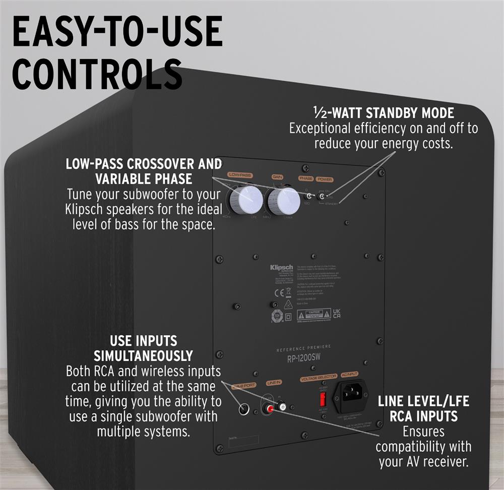 Low Pass Crossover and Variable Phase control allow you to tune the subwoofer to your Klipsch speakers and to your room, establishing the ideal level of bass. Line Level / LFE RCA inputs ensure compatibility with home theatre receivers.