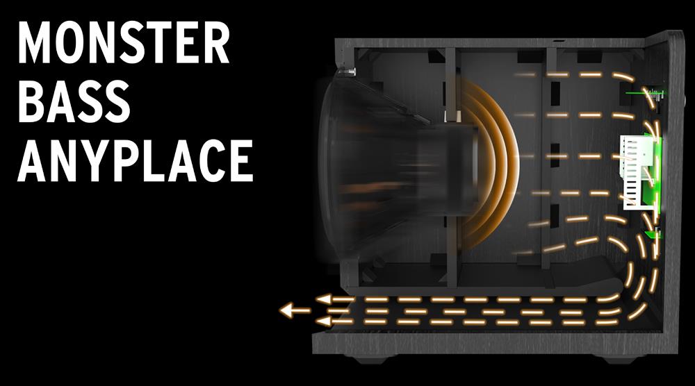 Proprietary internal geometry with a new Aerofoil slot port design minimises port noise for clean, undistorted low frequencies. The front-firing design allows for placement flexibility.