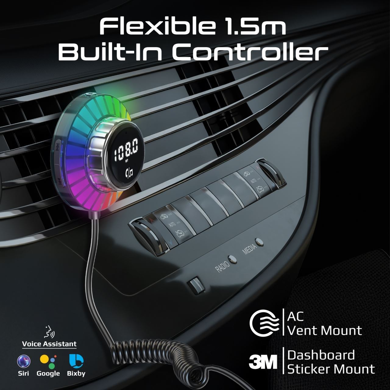 Flexible 1.5m Built-In Controller: Easily access controls with the 1.5m built-in controller that mounts securely to either AC vents or dashboards for ultimate versatility and convenience.