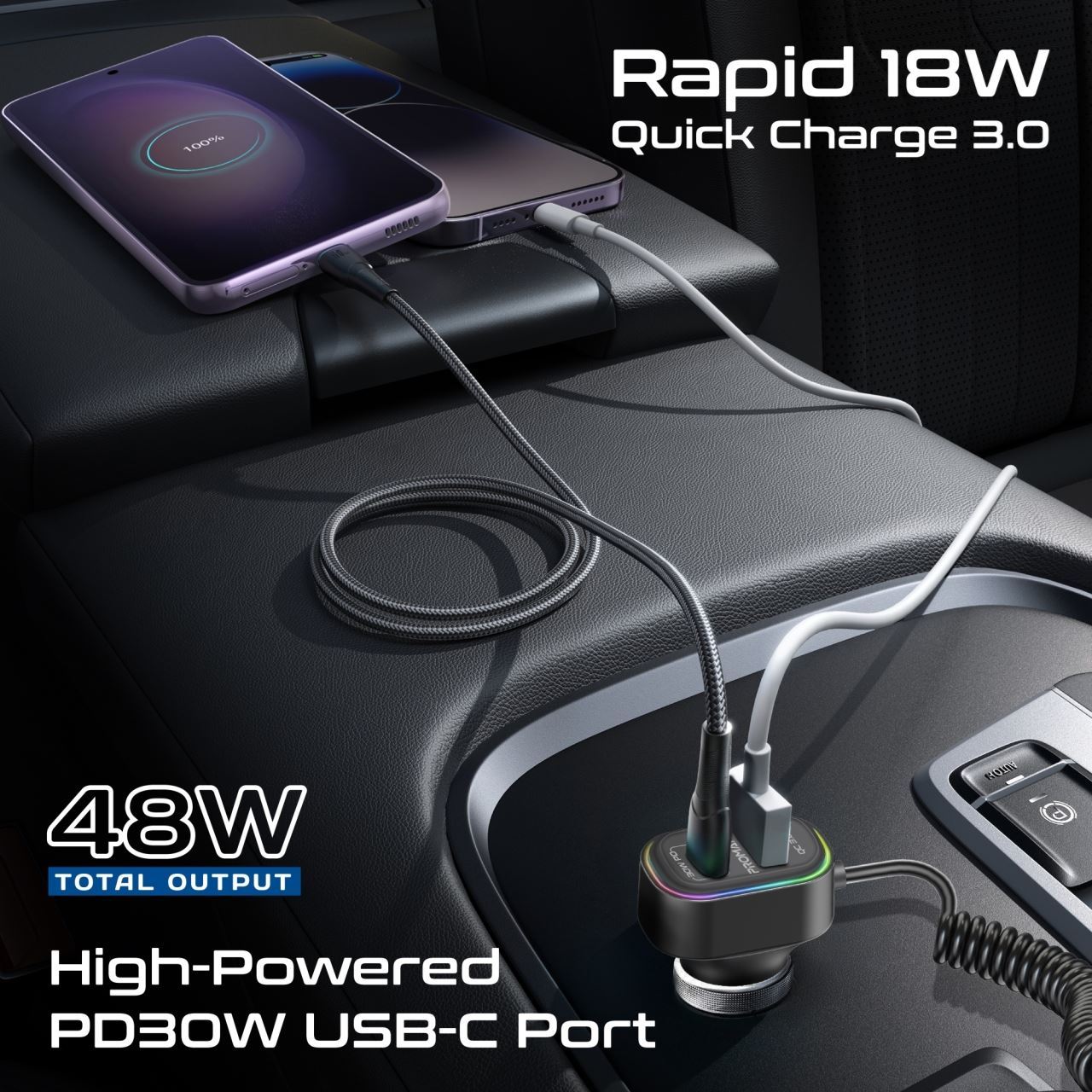 Rapid 18W Quick Charge 3.0 Port: Experience lightning-fast charging with the 18W Quick Charge 3.0 port, keeping your devices powered up in record time.