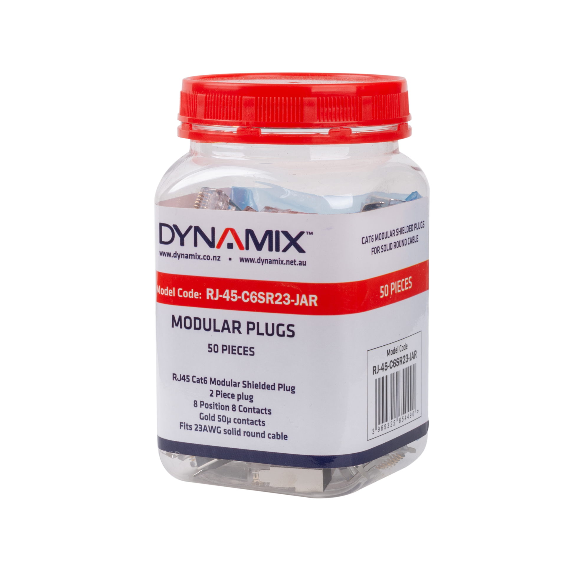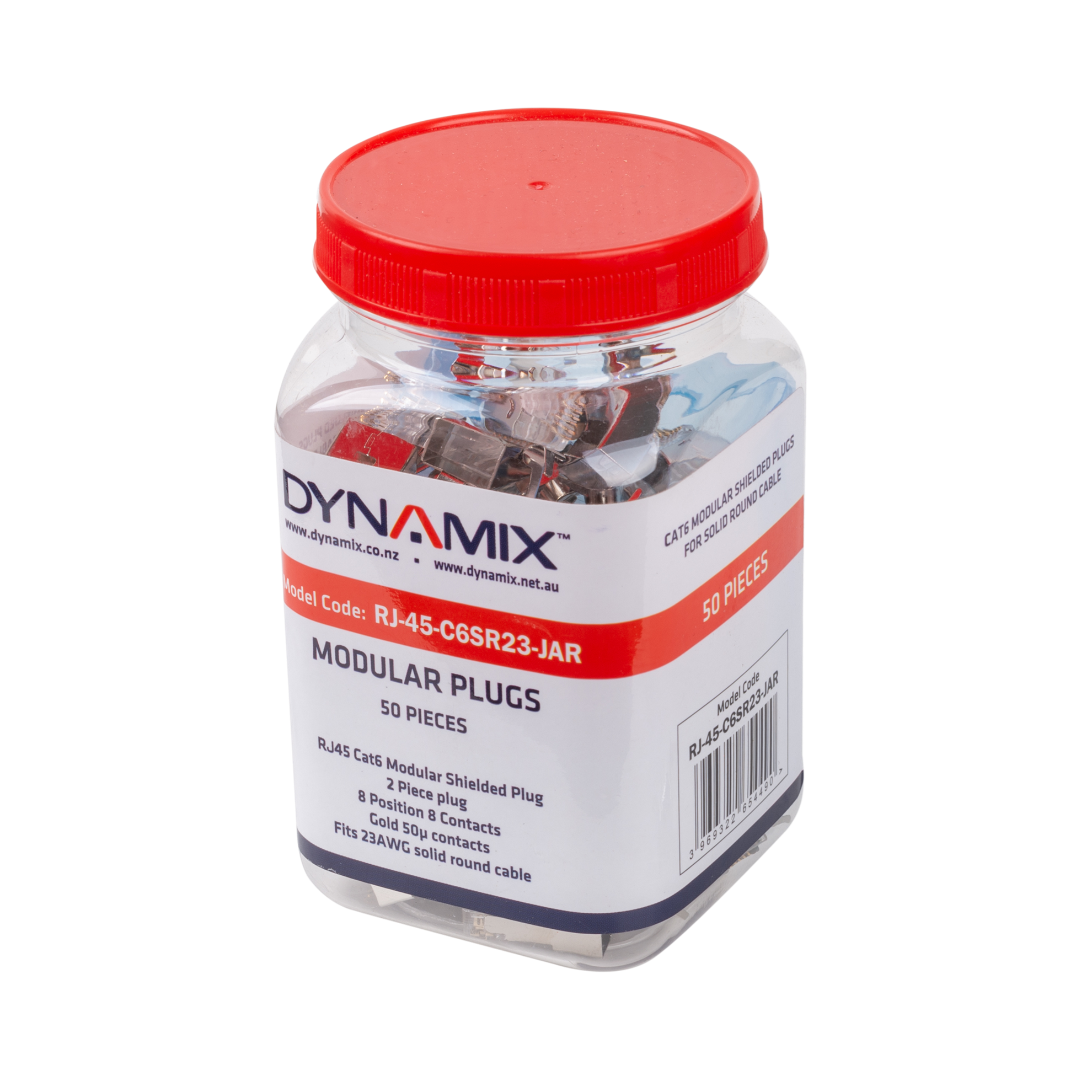 DYNAMIX RJ45 Cat6/6A/7 23AWG Solid Shielded Round Modular Plug. 50pc Jar. 8P8C, 50U with Insert. Recommended tool is CT-8CSTPEXT.
