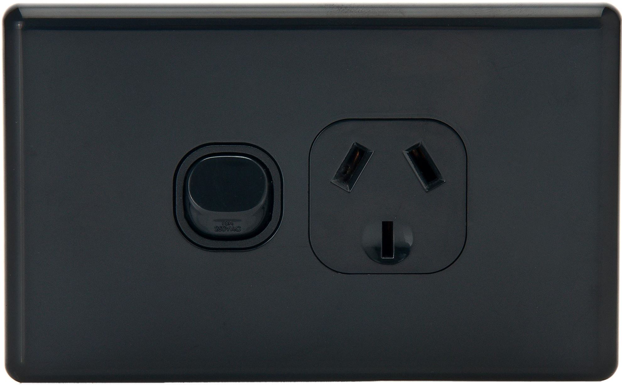 Single 10A Horizontal Power Point Removable Cover Flame Resistant Polycarbonate Black