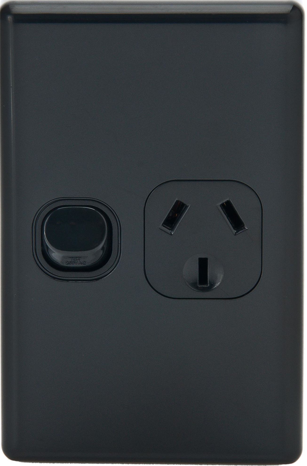 Single 10A Vertical Power Point Removable Cover Flame Resistant Polycarbonate Black
