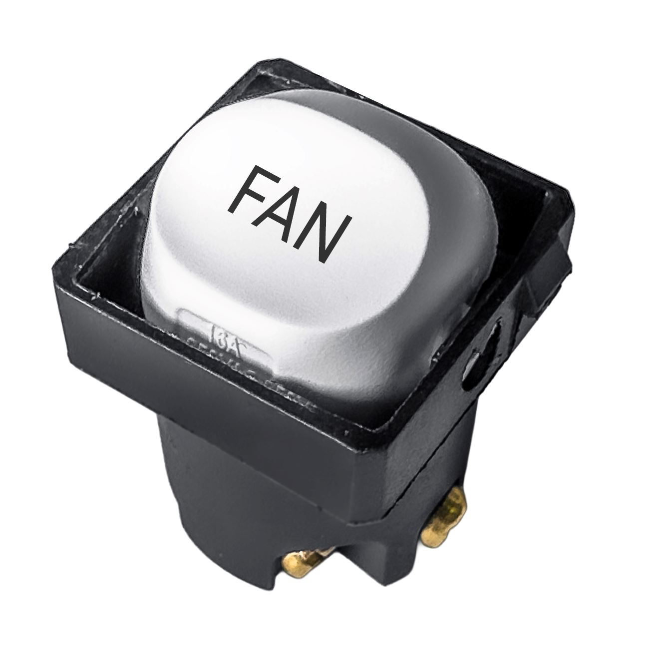 TRADESAVE Sleek 16A 2-Way Labelled FAN Mechanism. Suits all Tradesave Plates. Moulded in Flame Resistant Polycarbonate. Fade Resistant. Matt White