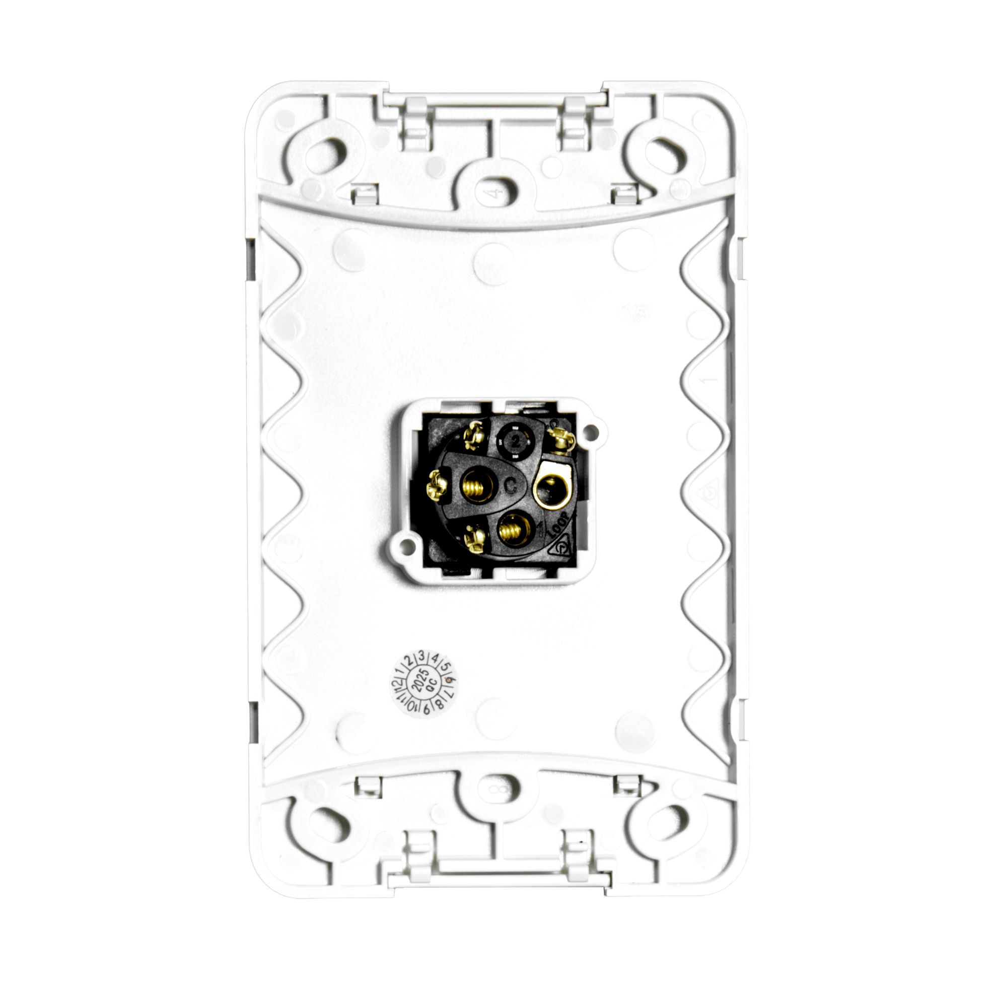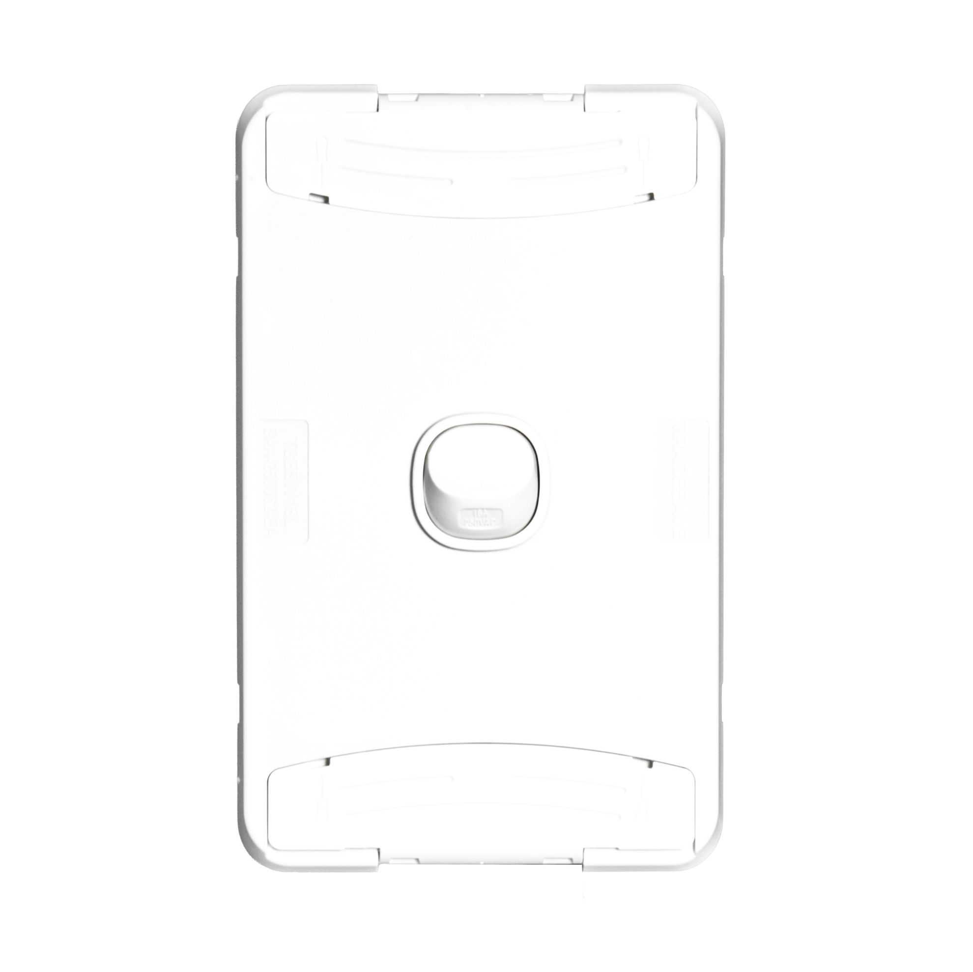 TRADESAVE Sleek 16A 2-Way Vertical 1 Gang Switch. Moulded in Flame Resistant Polycarbonate. Fade Resistant. 5mm Plate Thickness. Matt White