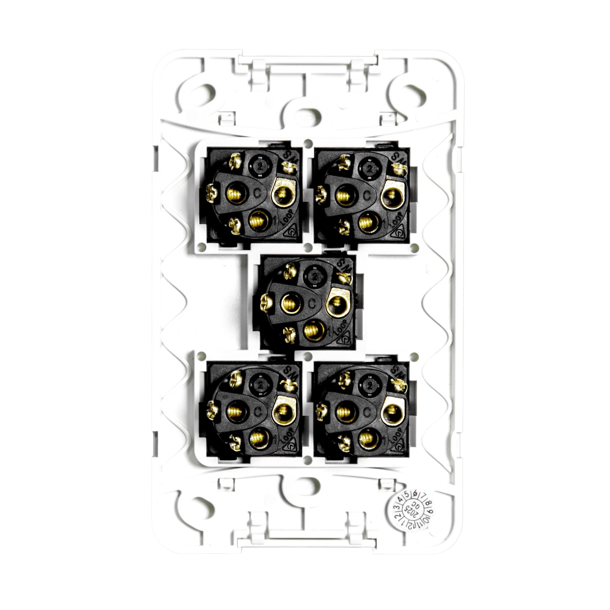 TRADESAVE Sleek 16A 2-Way Vertical 5 Gang Switch. Moulded in Flame Resistant Polycarbonate. Fade Resistant. 5mm Plate Thickness. Matt White